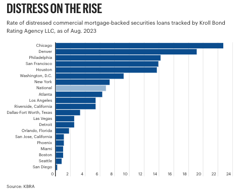 A recent analysis by New York-based credit-ratings agency Kroll Bond Rating Agency LLC, also known as KBRA, found the rate of delinquent or specially serviced commercial mortgage-backed securities 2.0 loan volume hit 6.8% in August, up from 4.5% in June 2022. CMBS 2.0 refers to conduit loans issued after the global financial crisis of the late 2000s when most current collateralized mortgage-backed securities (CMBS) deals were financed.