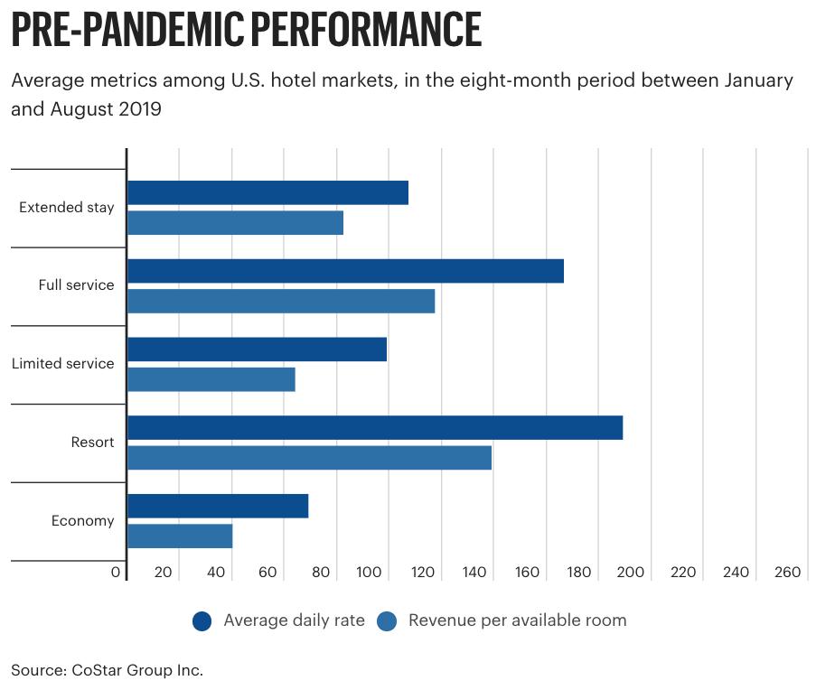 "Property types that overperformed are now getting more normal results, and the property types that underperformed are coming out and getting more normal," said Jan Freitag, national director of hospitality analytics at CoStar Group Inc.