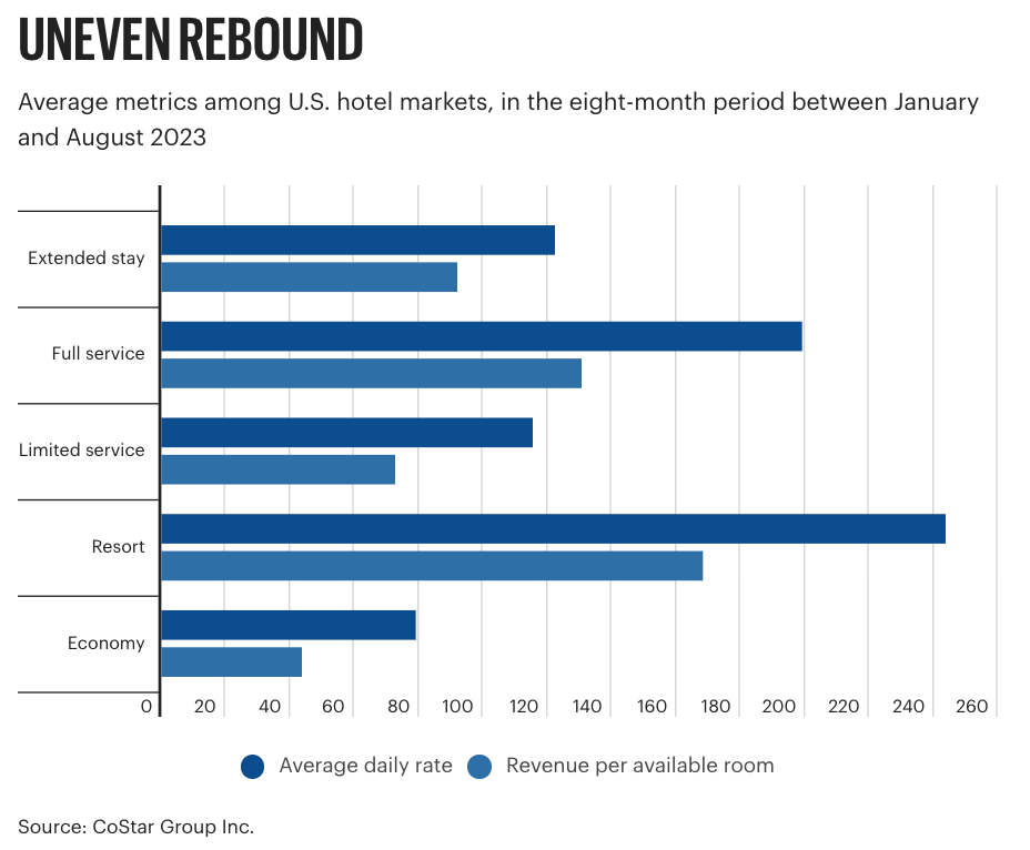 The national hotel market has emerged from its pandemic slump, as leisure and business travel have mounted comebacks in recent years. However, not all types of hotels benefit equally, and industry experts say those differences may persist in the post-pandemic world.